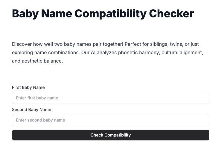 Type in any two baby names—great for twins, siblings, or just testing pairs you like. -