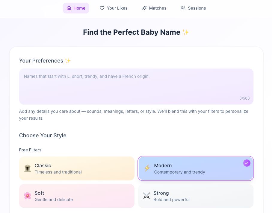 What really sets NameHatch apart is its filtering system. Instead of limiting you to broad categories like “popular” or “modern,” you can refine your search based on specific vibes and characteristics. Filters like Classic, Modern, Soft, and Strong give you immediate control over the style of names you want to explore.